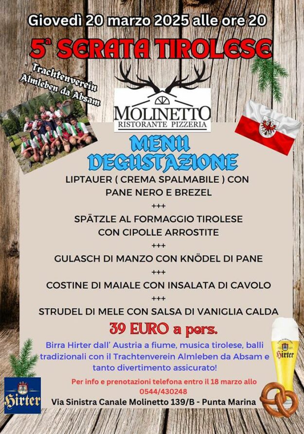 Partecipa anche tu alla nostra Serata Tirolese! Chiamaci per prenotare un tavolo al numero 0544 430248.