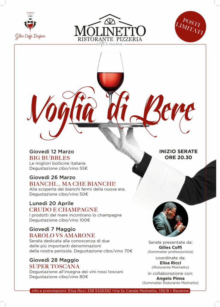 Il Ristorante Molinetto presenta 5 serate dedicate al gusto e al buon bere: vini, bollicine e abbinamenti unici con piatti studiati appositamente. Posti limitati PRENOTA SUBITO 338 5326392 Naviga tra i postPrecedentePost precedente:Mostra di Maura RomaSuccessivoProssimo post:6a Serata Tirolese: Musica, Tradizione e DivertimentoLeggi anche...6a Serata Tirolese: Musica, Tradizione e Divertimento23/02/2026Il menù di Capodanno 202601/12/2025Il menù di Natale 202506/11/2025Menù Valli & Pinete09/10/2025Menù Pasqua 202527/03/2025Festa della Donna25/02/2025